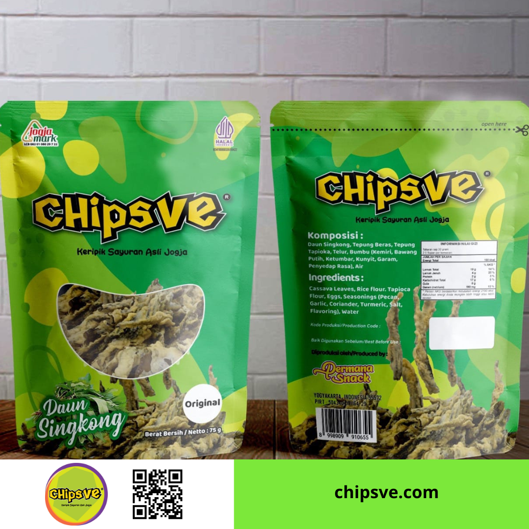 Diproduksi oleh PT. Permana Snack Industri, keripik ini menghadirkan kelezatan alami daun singkong segar yang digoreng hingga renyah, lalu dibalut  adonan tepung beras dan tepung tapioka  dengan bumbu racikan khas CHipsVe yang dibuat sendiri sehingga menghasilkan rasa gurih yang pas dan khas.